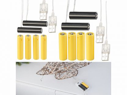 En effet, ces adaptateurs remplacent jusqu’à trois véritables piles AA ou AAA par le biais de trois piles factices reliées par un câble USB. En utilisant ces fausses batteries, ils alimentent vos décorations de fêtes et autres articles fonctionnant sur piles par le biais d’une prise électrique. Tout en veillant bien entendu à n’utiliser que la tension dont ils ont besoin pour fonctionner.