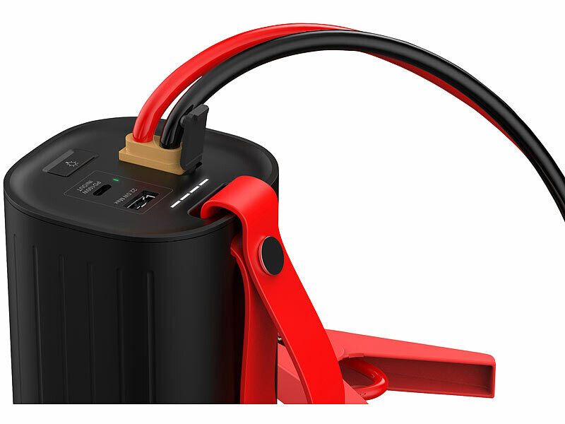 Cet appareil 2 en 1 polyvalent de la marque Revolt combine une aide au démarrage de voiture et une puissante batterie externe. Il vous permet de recharger facilement aussi bien vos appareils mobiles que la batterie de votre véhicule, et ce même lorsqu’aucune prise de courant ne se trouve à proximité !