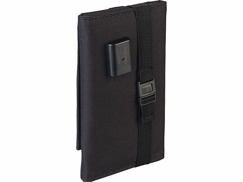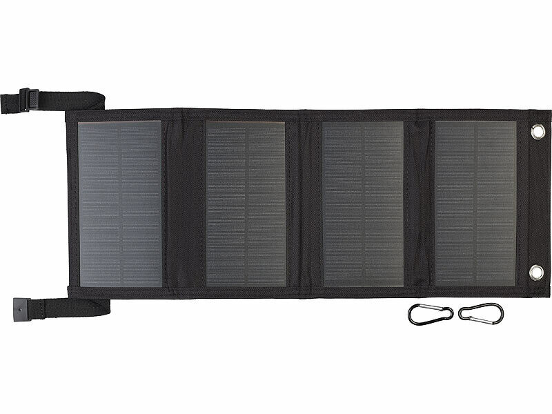 • Pack avec batterie nomade PB-170, câble de chargement USB, panneau solaire pliable, 2 mousquetons et modes d'emploi en français