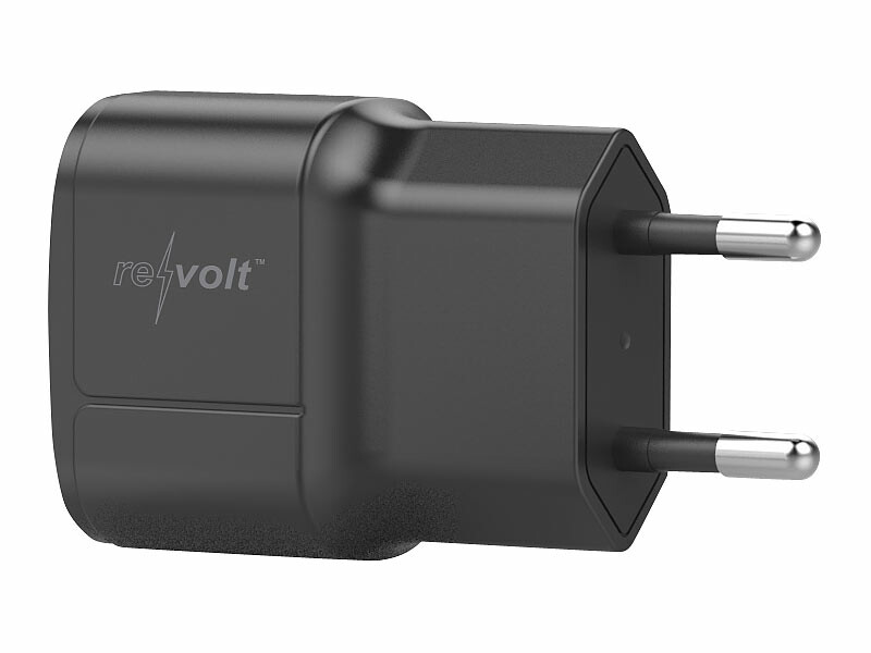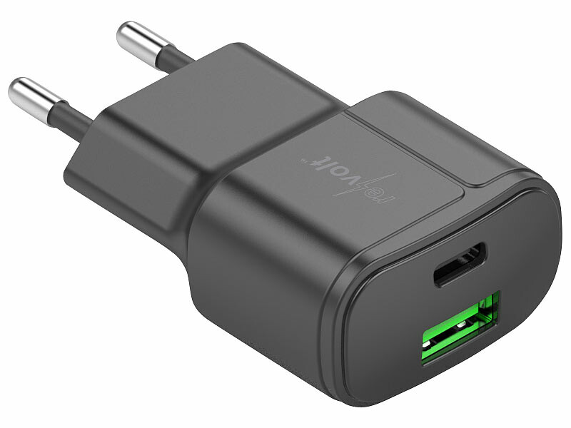 - Adaptateur secteur USB-A et USB-C noir, par Revolt