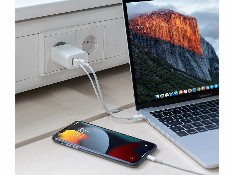 Grâce à deux ports USB jusqu'à 30 W chacun et aux fonctions de charge rapide Power Delivery et Quick Charge, l’adaptateur secteur USB de la marque Revolt vous permet de recharger vos appareils mobiles compatibles très rapidement ! Qu’il s'agisse de la batterie d’un smartphone, d'une tablette ou d'un MacBook, celle-ci est chargée en un clin d’œil !