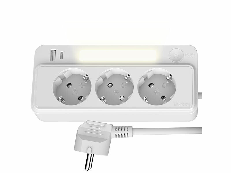 La veilleuse intégrée fournit un éclairage doux dans les pièces sombres. Elle est idéale comme source de lumière discrète pour le couloir ou la chambre. Grâce à elle, vous trouvez ainsi le bon connecteur sans vous perdre dans l'obscurité.