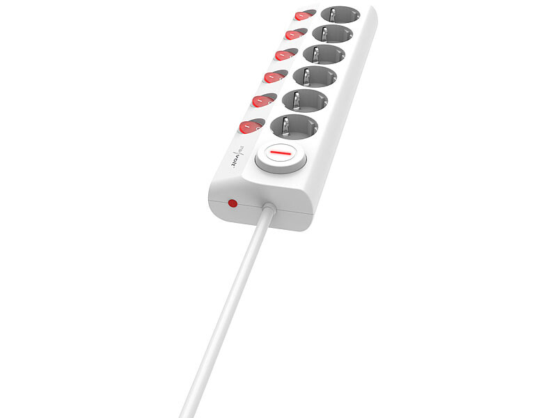 Dotée de 6 prises de courant avec interrupteur, cette multiprise de la marque Revolt vous permet de contrôler individuellement chaque appareil branché, ce qui est idéal par exemple lorsque vous alimentez scanners, PC ou imprimantes en continu.
