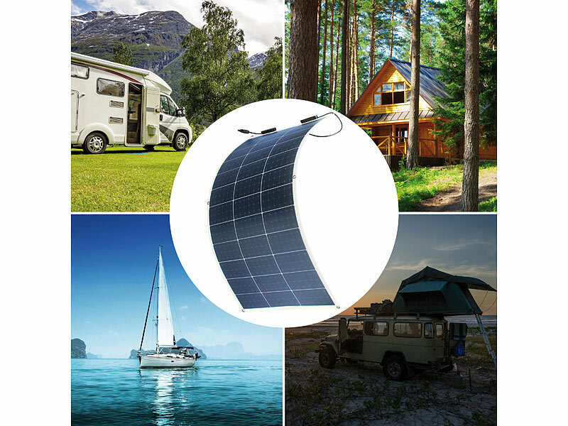 Avec le panneau solaire flexible monocristallin ETFE/EVA 100 W, produisez votre propre électricité ! Il résiste aux intempéries et peut donc être utilisé dans le jardin, au camping ou sur un bateau. Il suffit de le raccorder à un régulateur de charge ou à une batterie 12 V.