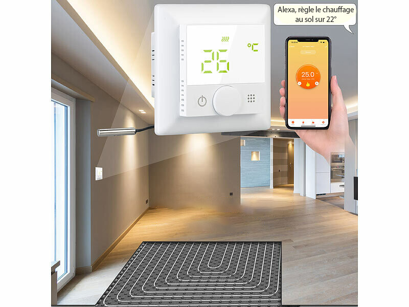 - Thermostat connecté pour chauffage au sol avec capteur externe, blanc de la marque revolt